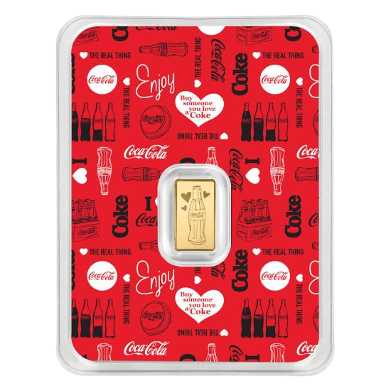 Our Swiss-Made 0.5 gram PAMP Coca-Cola gold bars boast 24 Carat, 99.99% Pure Gold and are LBMA (London Bullion Market Association) approved, making them a great choice for first-time investors and collectors, or as a birthday, christening or graduation gift.