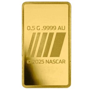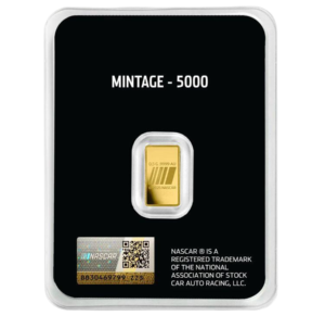 All our 0.5 gram PAMP produces Nascar gold bars are brand new, with a unique serial number so you can track the gold’s quality. This product comes in a credit card-sized package.