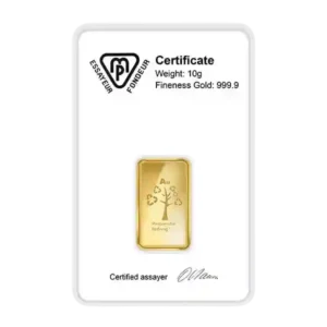 Designed by the reputable Swiss bullion brand Metalor, all of our 10 gram Metalor gold bars carry LBMA (London Bullion Market Association) approval. Each of our 10g gold bars is stamped with a unique serial number, enabling you to trace its purity.