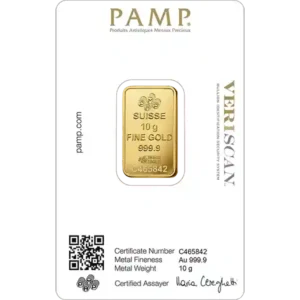 All our 10 gram PAMP Lady Fortuna gold bars are brand new, with a unique serial number so you can track the gold’s quality. This product comes in a credit card-sized package.