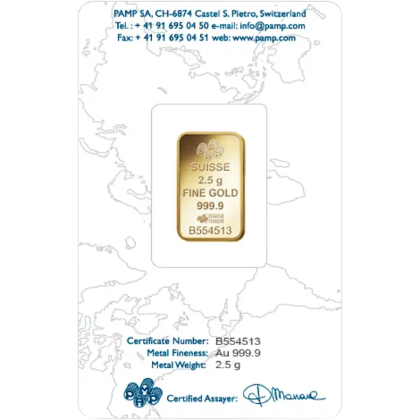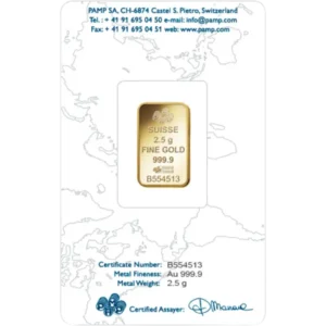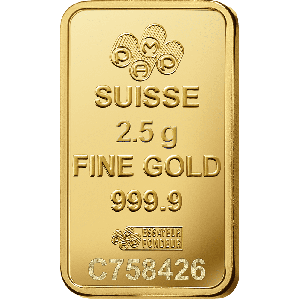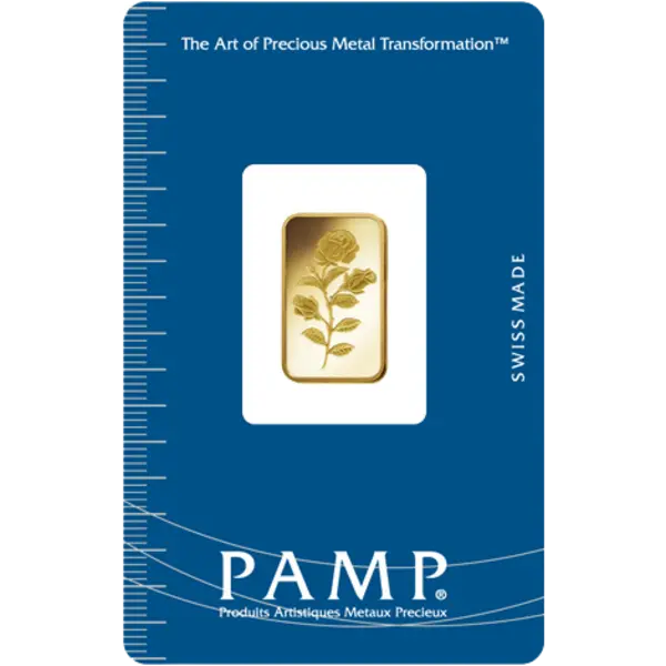 Our 24-carat 2.5 gram PAMP Rosa gold bars are perfect for first-time investors and collectors. All of our gold products are LBMA approved, with 99.99% purity. Our 2.5 gram PAMP Rosa gold bar comes with a unique serial number so that you can trace the purity of the metal.
