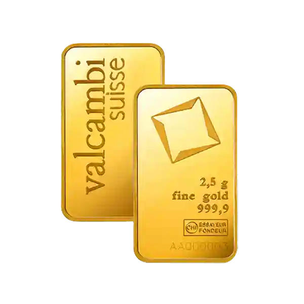 All our 2.5 gram Valcambi gold bars are brand new, with a unique serial number so you can track the gold’s quality. This product comes in a credit card-sized package.