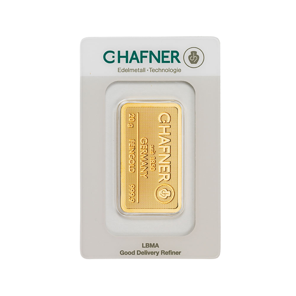 20 Gram 24 Carat C.Hafner Branded Pure Gold Bar