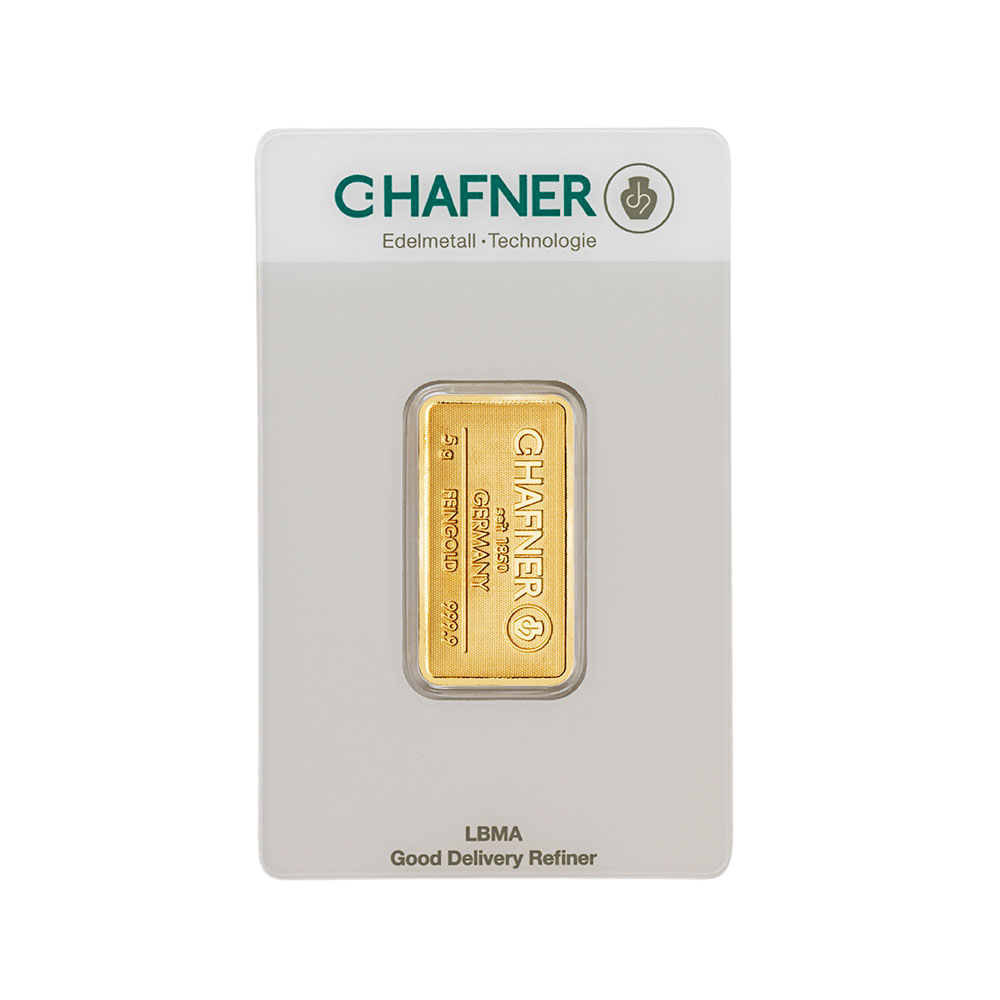 All our 5 gram C.Hafner gold bars are brand new, delivered in a credit card-sized package with a unique serial number so you can track the gold’s quality.