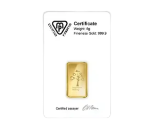 Our Swiss-Made 5 gram Metalor gold bars are 24 Carat, 99.99% Pure Gold and are LBMA (London Bullion Market Association) approved, making them a great choice for first-time investors and collectors, or even as a special gift.