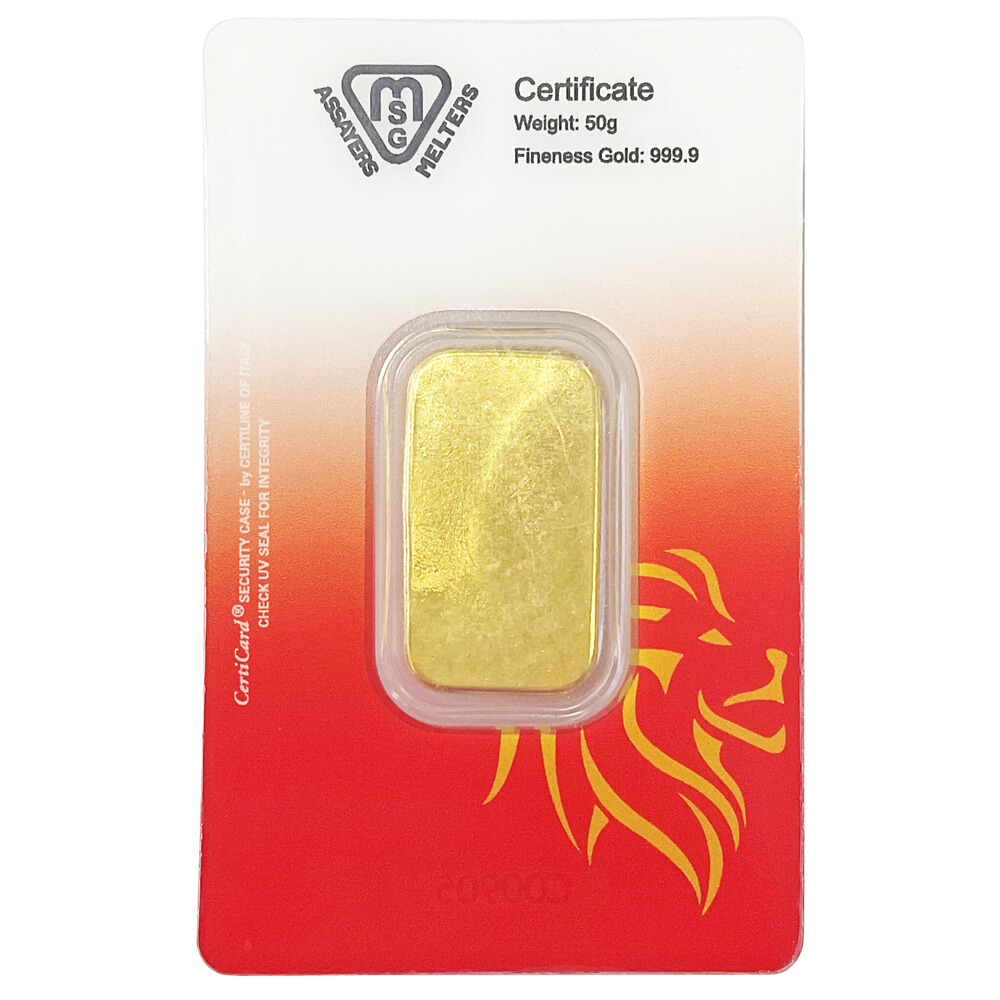 Our 50 gram gold bar is a luxury asset for both collectors and investors. This sleek gold bar is made from 24-carat pure gold, symbolising the quality and prestige that personifies this product.