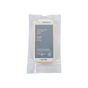 500 Gram 24 Carat Heraeus Branded Pure Gold Bar